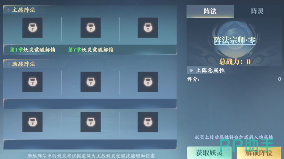 所有妖灵均配备一项「觉醒技」,需在战斗中持续积攒灵力值方可释放,该技能往往具备范围控制、爆发伤害或关键增益等扭转局势的效果。此外,妖灵自身携带基础属性(如攻击、暴击、抗性等),其数值将直接叠加至主角面板。每位玩家最多可配置9位妖灵,分为两种功能定位: