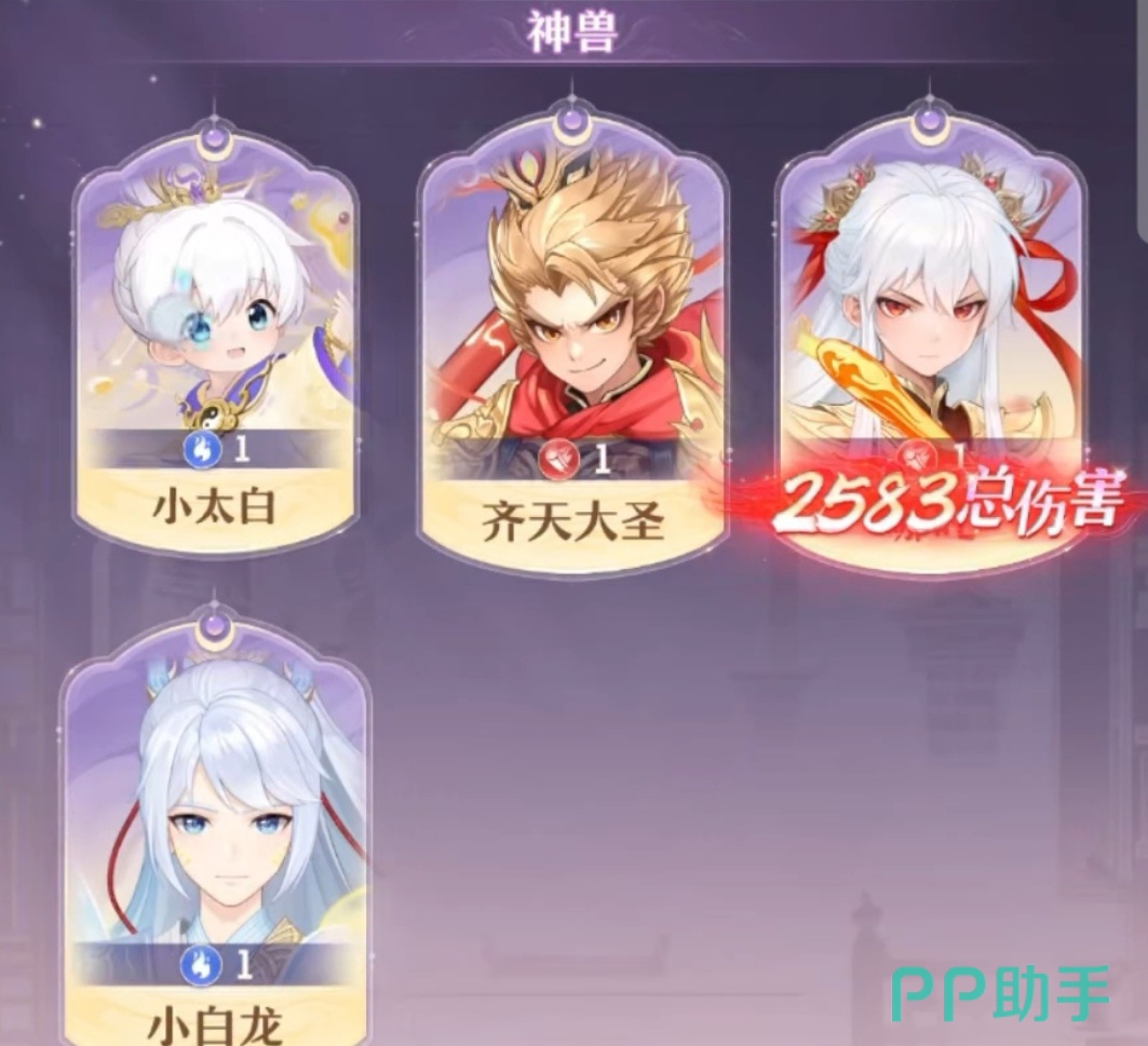 小太白:作为一名法术输出型神兽,小太白主打群体魔法攻击。其主动技【星落九天】可同时打击三个目标,造成等同于自身攻击力100%的伤害。每次释放该技能时会消耗全部星辰值,每消耗一颗星辰,便会额外对主目标追加一次攻击;若主目标已被击败,则追击将随机转移至其他敌方单位。在通用技能方面,他配备了【高级爆伤】、【高级法爆】、【高级神佑】与【高级灵动】,整体能力分布较为均衡,虽无特别突出之处,但实战表现稳定可靠。
