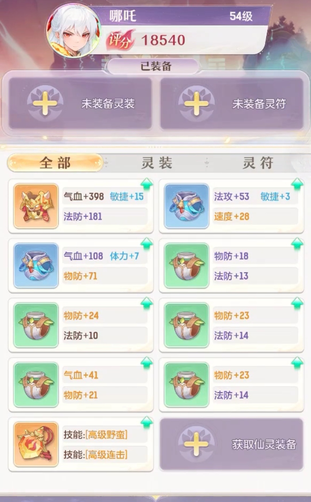 哪吒:同样是法术系输出角色,哪吒的基础资质优于小太白,初始强度更高,进阶后属性提升更为明显。他的专属天赋【三头六臂】可触发“赤焰穿心”效果,每当消耗20点怒气,即可额外追加一次攻击。再结合范围伤害技能【风火连天】,能够有效打击敌方前排阵容,造成持续压制。通用技能如【高级强力】与【高级野蛮】进一步增强了其输出稳定性,是团队中不可或缺的法术核心。