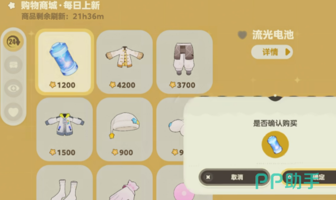 另外在游戏里玩家,还需要获得一些流光电池这类必须的物品,想要获得这些特定的物品,也需要去商购买,多带有功能性的服饰,包括物品,也能提升游戏里各类的工作效率,要想顺利进入到商店,玩家需要先去完成游戏里面的主线任务,前期都是比较基础的角色装扮或者是家园建造,为的是能让玩家掌握基础的操作,等完成这些基础的操作之后,就可以看到在草原上会有一个巨大的电视机,使用这个电视机之后,就能顺利进入到购物界面,在这里会有大量的物品可以购买。