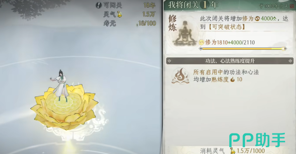 闭关机制具备年龄限制设定,角色实际寿元会影响可执行的修炼行为。玩家可通过消耗寿元丹突破此限制,实现持续进化。灵潭感悟功能可一次性获得4000点灵气,越早开启灵潭,越有利于前期资源储备与境界跃迁节奏把控。此外,游戏中多类交互节点均支持灵气事件随机刷新,高频积累灵气不仅夯实练气期根基,更同步强化神识值与寿元数值的成长稳定性。