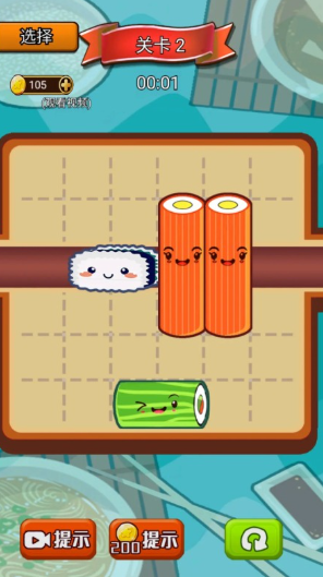 快节奏寿司制作模拟器。依据实时弹出的订单,准确选取海苔、米饭、鱼生等原料组合指定品类(如金枪鱼卷、三文鱼握)。倒计时机制强化操作紧迫感,出错将影响顾客满意度。完成订单积累金币,用于扩充食材库存与升级料理台功能。