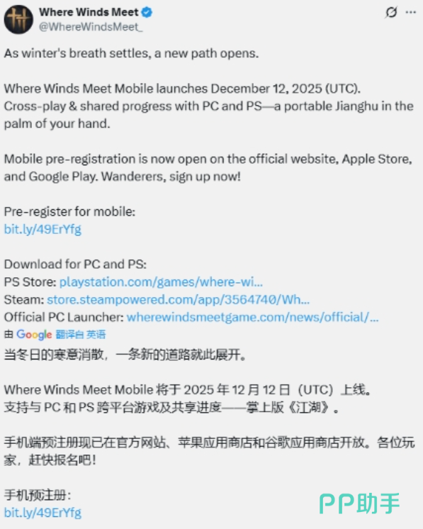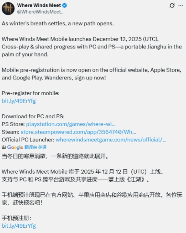 从立项之初,《燕云十六声》即以全球化体验为设计原点,在厚重史实框架中注入现代交互逻辑。12月12日不仅是版本上线节点,更是跨越地域与语言的江湖约定——当第一缕宋风拂过虚拟山河,属于每位玩家的侠义征程,就此启程。