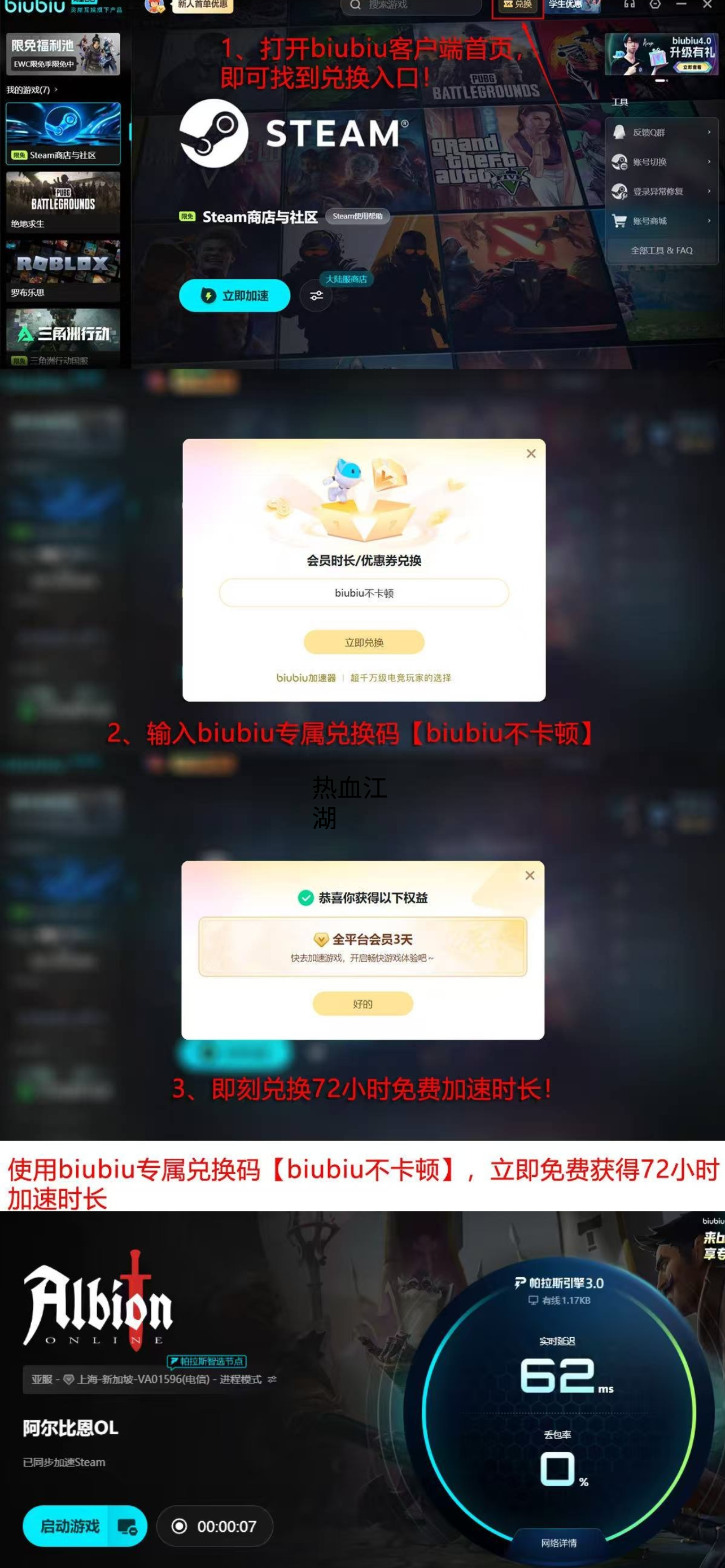或许有的小伙伴还抱有怀疑态度,那么不妨亲自下载尝试体验一番,平台给大家提供了很多的福利,不需要花钱就可以免费提速,新人在第一次注册时,就可以得到平台赠送的24小时福利了,同时所有人还可以参加口令服务,在指定的区域内使用【biubiu不卡顿】就可以顺利拿到手三天的体验时长,新人可叠加享受四天提速时间。