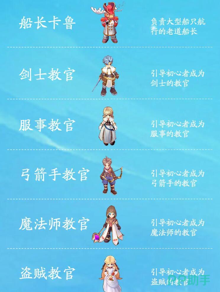 对于玩家来说,仙境传说之约定好的冒险游戏相对是比较贴心的,因为在整个游戏当中,玩家进入游戏时会有引导他们成为某种职业的教官,比如剑士教官,服侍教官,弓箭手教官,魔法师教官以及盗贼教官。额外还有一位npc是负责大型船只航行的老道船长,这个船长是卡鲁。