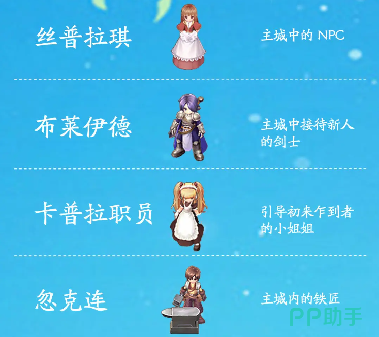仙境传说之约定好的冒险NPC有哪些呢?仙境传说之约定好的冒险游戏的趣味性特别强,能够实现多个角色的养成,但是对于玩家来说,在刚开始进入游戏的时候,他们也需要了解npc,虽然npc并不是整个游戏的主要角色,但是他们也会扮演着重要的作用。既然大家想要深入的去了解npc,小编就针对这方面做相关内容的介绍。