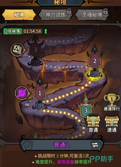 还有个挺重要的事,就是这个疲劳时间机制,每天就能刷两个小时的图,这时间很宝贵,只要你剩余时间超过三十分钟,进图就是三倍掉落,要是剩下不到三十分钟了,掉率就变回正常了,等时间彻底用完了你就进不去关卡了,每天凌晨五点会把时间重置,所以大家把每天这两小时疲劳刷完之后,要是还觉得不过瘾,可以去时空秘境里逛逛,那里面有些玩法是不扣疲劳时间的,给的奖励也挺不错,反正闲着也是闲着,能拿的资源尽量都拿了。