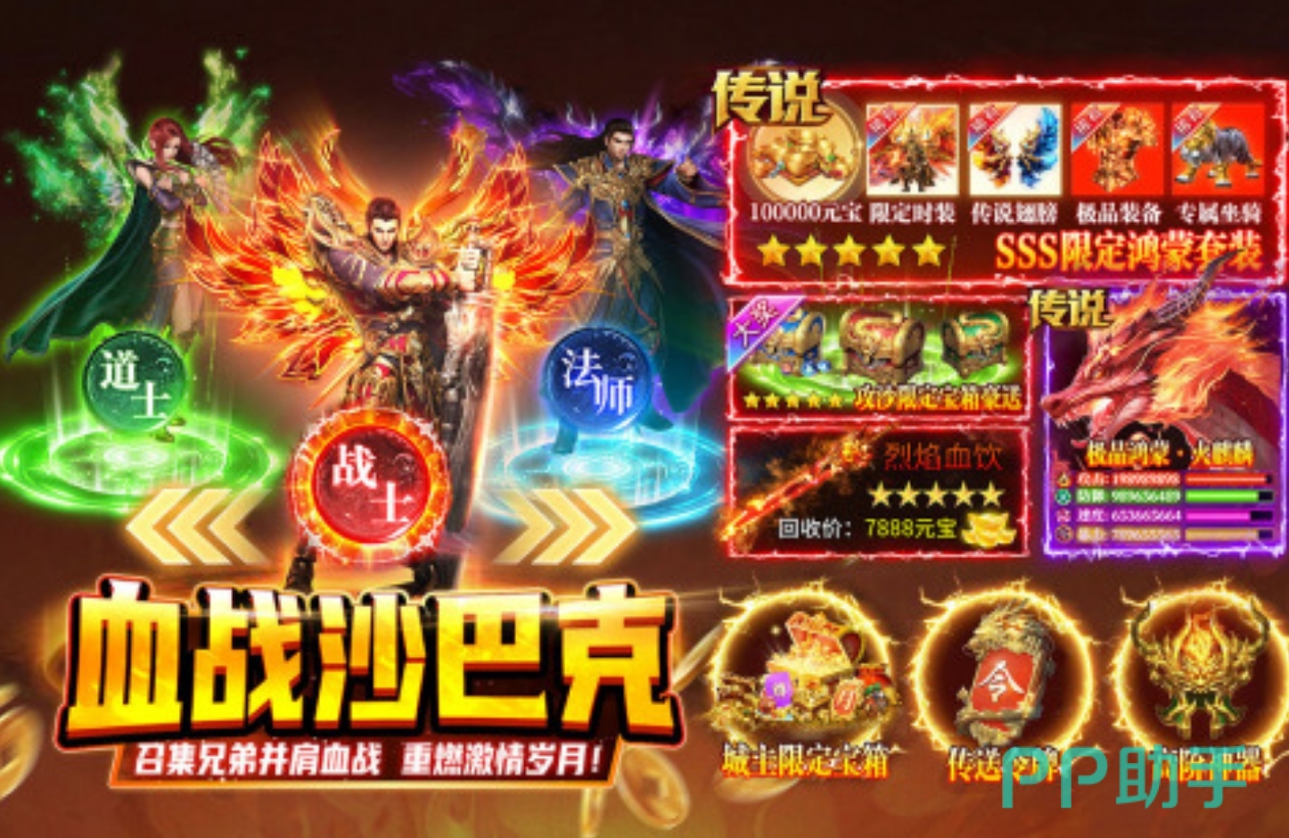 三职业的复古设计搭配上与原版传奇没有太大区别的玩法,令《热血沙城》自上线后就变得无比热门。而且它还通过为玩家带来满攻速、高经验倍率等福利,来帮助各位快速提升等级,让各位能更快地渡过前期的发展阶段,从而能更早地去享受后期的沙城战、跨服战等多人玩法,畅爽多人pk带来的激情。同时,它里边的装备也很好获取,即便是小怪也有概率能爆发高品质装备,让人们越刷越强。