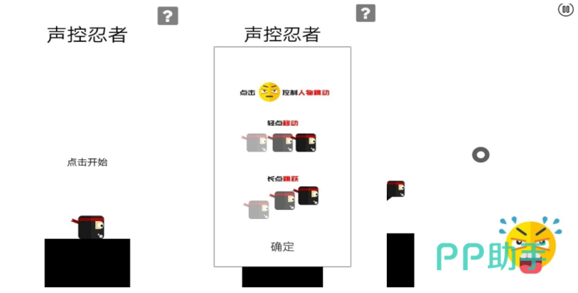 声控跳一跳是款操作系统毫无压力的单机竖屏小游戏,主要的任务是使用声音控制小忍者向前跳跃,声音越大则小忍者的跳跃距离越远,在玩这款跳一跳游戏的时候要把手机拿到嘴边,根据地形的不同就可以使用不同分贝的声音进行控制,黑白简单的背景色调加上毫无难度的音效操作都是亮点,声控爱好者可在本作中尝试控制忍者冒险。