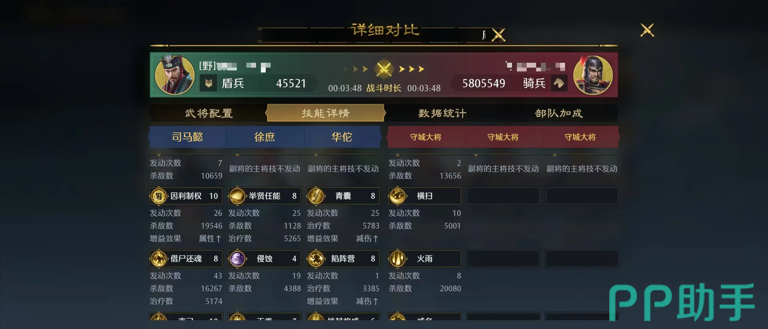 华佗则负责体系最后一环——高强度群体回复与负面状态净化。其治疗量在同类型武将中处于顶尖水平,且具备驱散控制效果,可及时解除眩晕、禁疗、缴械等关键负面状态,保障司马懿与徐庶的技能释放频率与行动自由度,确保毒盾机制持续生效。