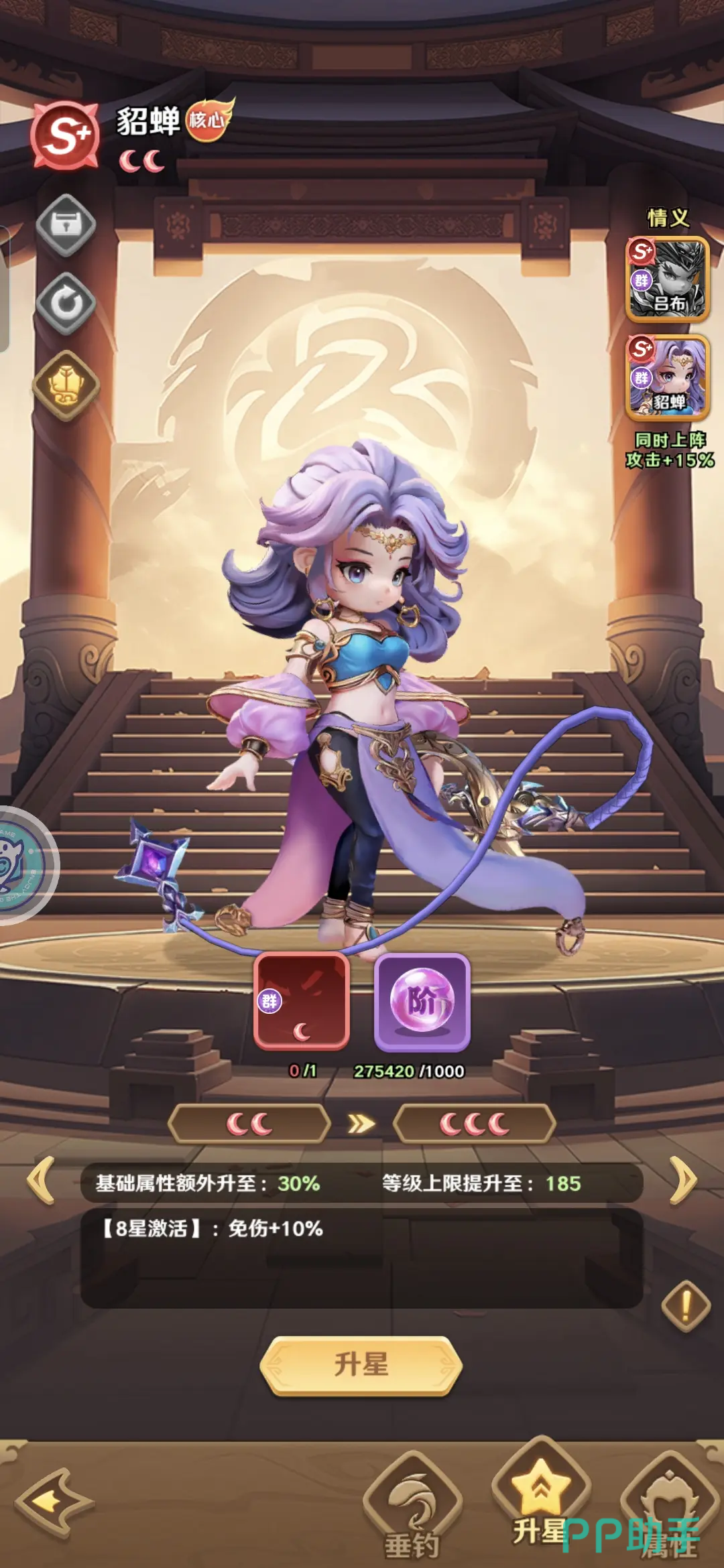 次选神貂蝉——团队控场与生存保障的关键支点。相较于基础版本,神化形态大幅强化了怒气干扰能力。普攻除常规伤害外,必附带“闭月”效果,随层数提升逐步降低目标所受伤害,最高可达50%减伤。主动技能可同时对最多3名敌方单位施加“魅惑”,使其在一定回合内丧失行动自主权并转为攻击友方单位。该特性在面对多核爆发阵容或高机动性敌人时尤为关键,兼具反制与节奏掌控双重价值。