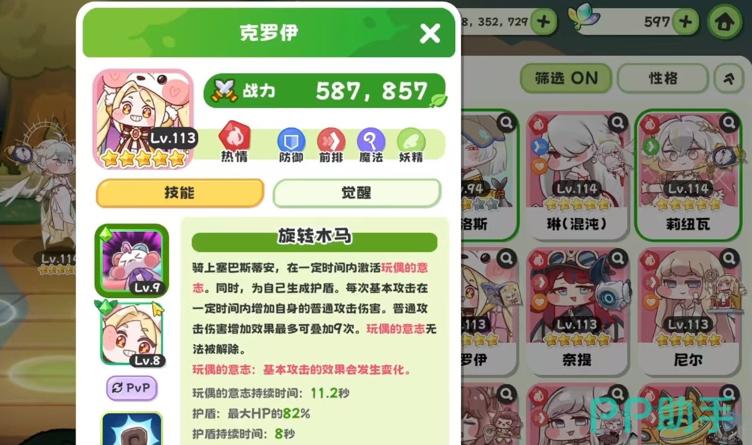 克罗伊是前排魔法坦克的典型代表,集承伤、控场与团队辅助于一体,新手友好度高,常被用于前期开荒阶段。其技能可生成高额护盾,且护盾层数叠加后可转化为伤害增益;在推图与副本推进中,既能有效吸收伤害、吸引仇恨,亦能清理小怪,阵容兼容性强,适用于绝大多数PVE内容配置。