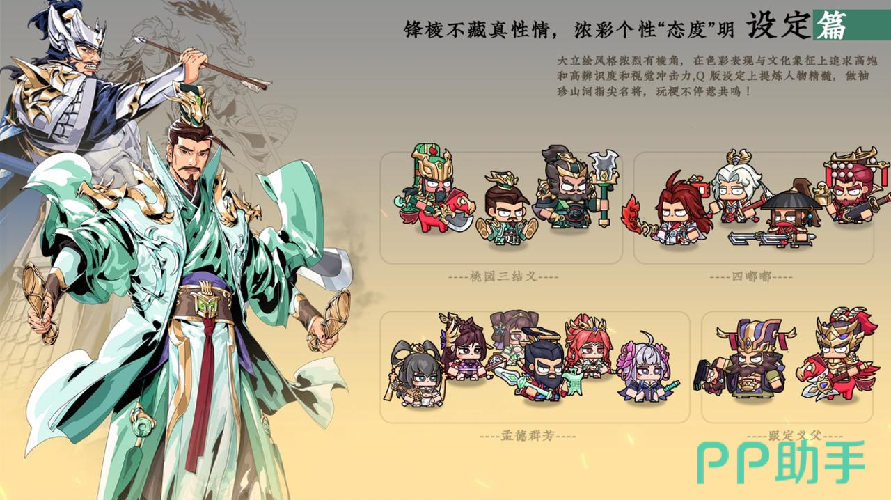 武将形象严格参照三国史实与演义设定进行美术重构,每位角色均配备唯一神兵系统,神兵不仅提升基础属性,更可解锁特殊战斗特效与被动增益。布阵采用六宫格自走棋式棋盘,玩家通过拖拽调整站位,实现前排抗压、后排输出、侧翼牵制等战术意图,真正实现“指尖运筹,静待决胜”。