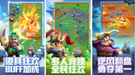主打本地同屏与在线联机双模式大乱斗。初始角色为低战力小兵,通过击杀、拾取道具与连击积累成长资源。支持3v3、5v5等多种人数配置,战斗节奏明快,强调即时反馈与道具策略运用。场景中散布加速、护盾、分裂弹等辅助道具,增强随机性与娱乐表现力。