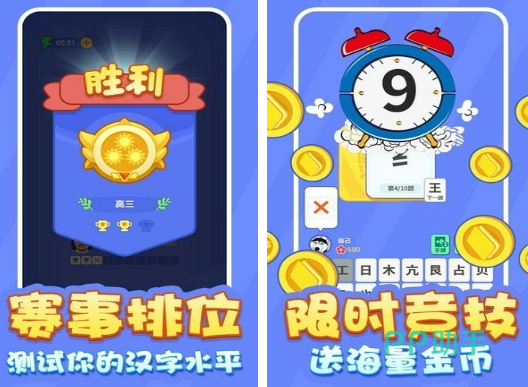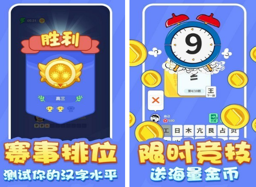 围绕偏旁部首排列组合展开多模态玩法,包含限时挑战、无尽模式及实时在线竞速三大核心场景。玩家需在规定时间内,按提示要求快速完成指定汉字的部件拼合任务,系统即时判定结构正确性与完成速度。赛事机制强调反应力、汉字储备量与空间布局能力三重维度,同时设置入门、进阶、高手三级难度体系,覆盖初学者至汉字爱好者的全阶段成长路径。