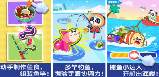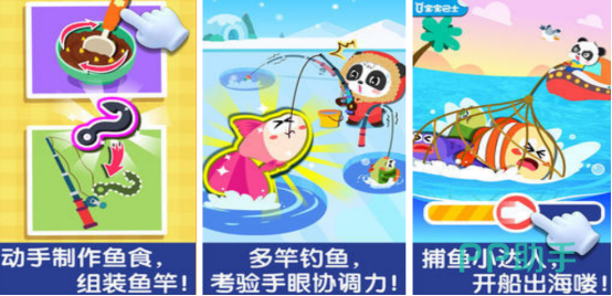 在众多钓鱼游戏当中,宝宝钓鱼由宝宝巴士所打造,有超级丰富的特色鱼儿,带着小朋友详细了解海底世界,可以认识热带鱼、鲨鱼等不同的海洋生物,通过点击小鱼来听到充满童真童趣的特色发音,模拟真实的钓鱼过程,比如组装鱼竿或者多竿钓鱼等一系列操作,让小朋友详细了解钓鱼技巧以及不同的海洋知识。