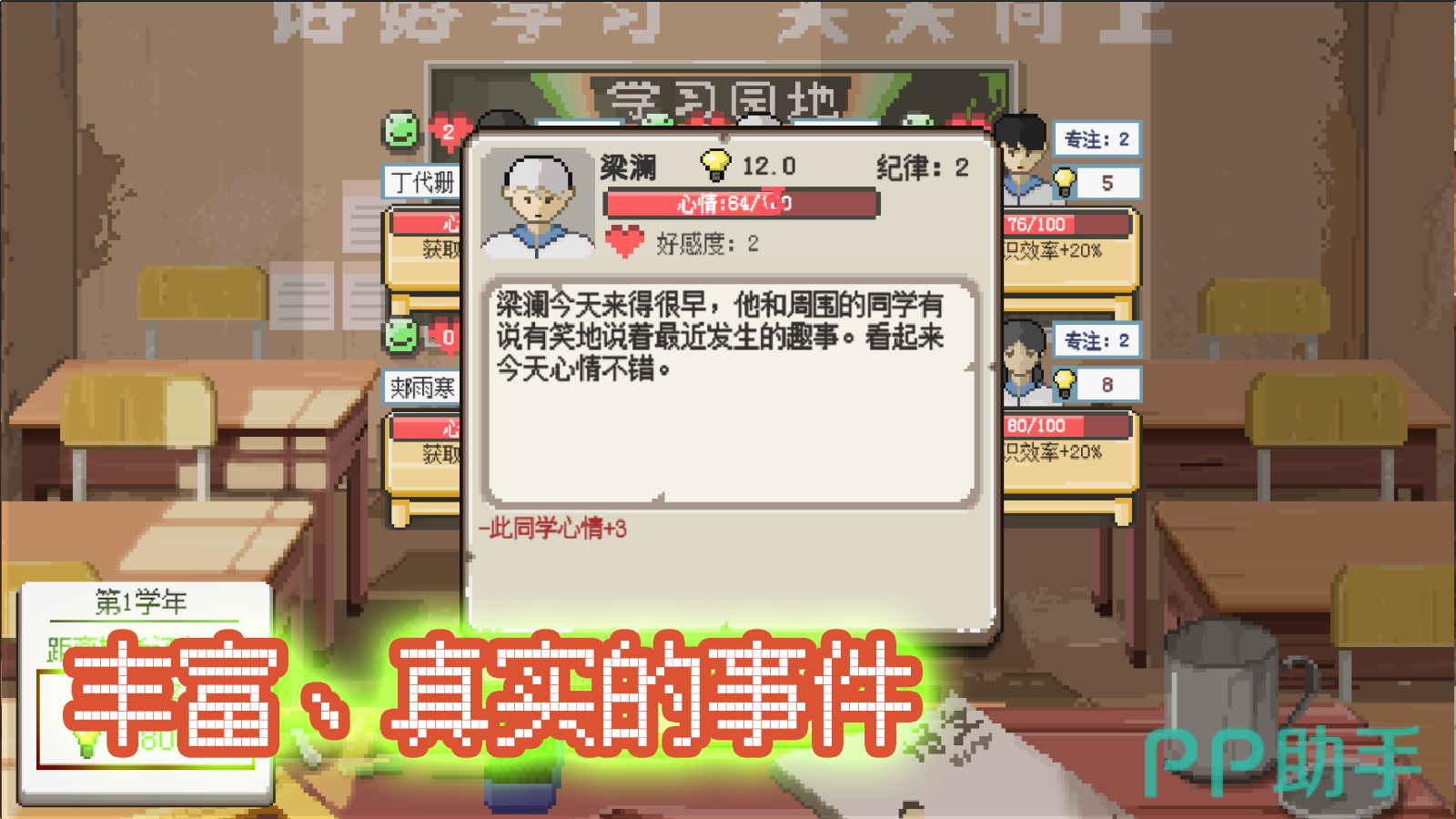 采用复古像素美术风格的教育主题模拟经营游戏。玩家化身赴西部基层支教的高校毕业生,承担教学与育人双重职责。课堂教学机制创新融合三消+卡牌元素,需根据学生性格特征与学习状态动态调整授课方式;中考成绩直接影响教育补贴额度,用于翻新校舍、添置教具;课余可开展种菜、钓鱼等生活化活动,构建真实质朴的乡村教育生态。