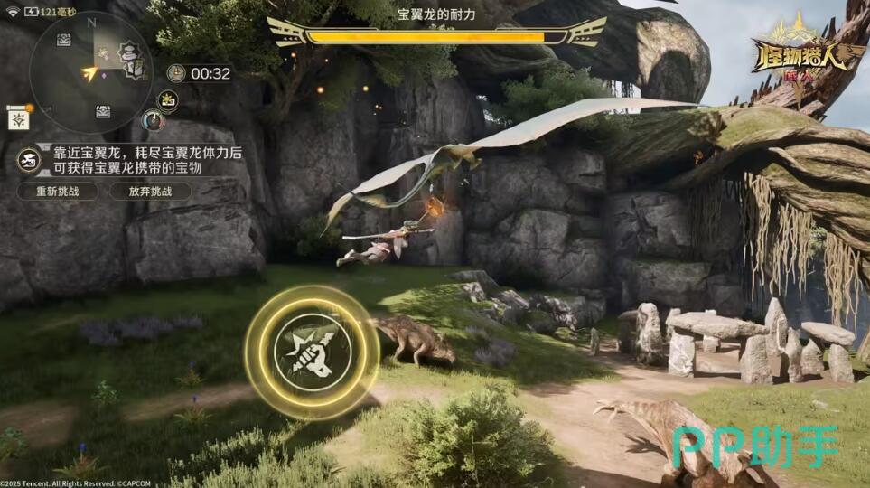 《怪物猎人:旅人》中的“追翼夺宝”玩法是游戏内极具辨识度的核心挑战之一。该模式并非传统狩猎,而是以高精度操作与节奏把控为核心的限时互动机制。玩家需操控角色协同宝翼龙,在动态视觉反馈中完成关键动作,成功触发夺宝判定。