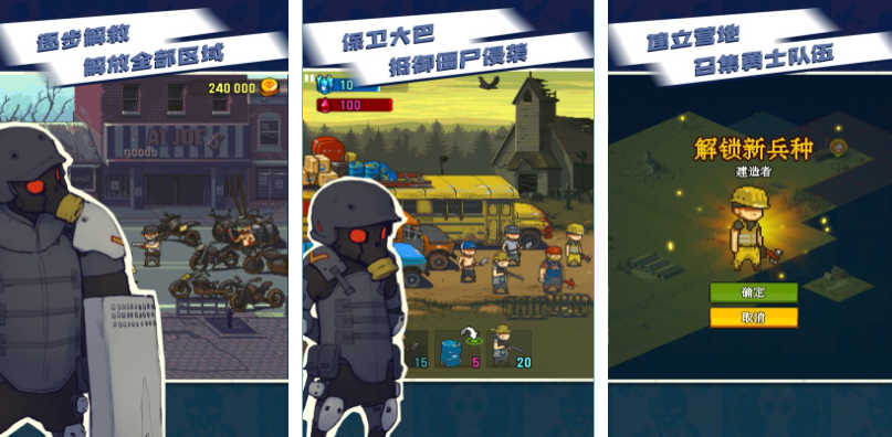 全民僵尸大战是款类似植物大战僵尸的像素风打僵尸手游,可尝试放置一些幸存者与僵尸进行公平的PK,强化机制也很完善能让幸存者拥有形形色色的超能力,特种兵、农夫和工人等超多的幸存者期待着大家解锁,保护大巴并消灭尸潮的主要任务耐玩性更强,充满新鲜感的塔防僵尸体验也足以让朋友们沉迷。