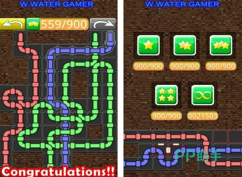 以接水管这种玩法为主要的特色,通过将移动的管道正确的利用拼图的方式,连接到各种房间以后,就可以完成任务挑战。涵盖4种不同的难度级别,对于各个年龄段的玩家来说,都可以锻炼脑筋,甚至是思维能力。需要在体验的过程当中,仔细的对水管的布局进行观察,根据不同颜色水管成功接入的方式,就有机会完成挑战。