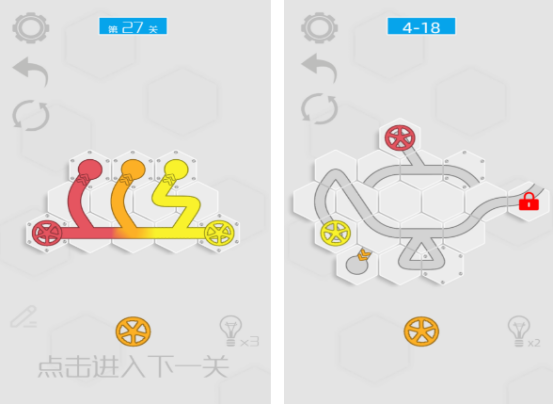 这款能在六边形的世界当中,以连接水管玩核心玩法的手游,也是需要玩家开动脑筋,才能够完成关卡挑战的。主要的特点就是,将水源正确的引入目的地的情况下,使所有的水源都能够顺着水管到达目的地,还有不同颜色的水流,通过仔细的对每个关卡当中的任务要求,或者利用交换的方式进行水陆之间的连通以后获得奖励。