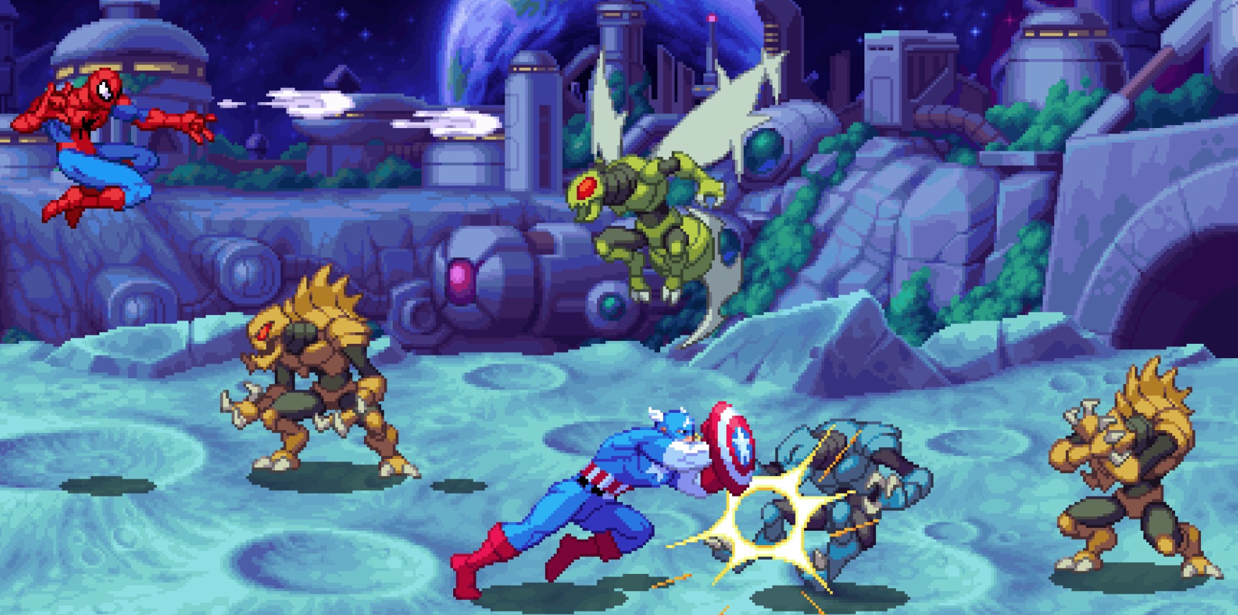 《Marvel Cosmic Invasion》是一款由Tribute Games等知名开发团队联合打造的漫威IP横版动作游戏,现已登陆Steam平台。游戏以宇宙级危机为背景——反派“歼灭者”率领湮灭虫群发起全面入侵,玩家需从15位经典漫威英雄中任选两位组队,从纽约街头一路征战至浩瀚宇宙深处。新星、蜘蛛侠、金刚狼等角色悉数登场,每位英雄均配备独特技能与连招系统,配合高密度敌人与华丽组合技,带来极具节奏感的街机式战斗体验。