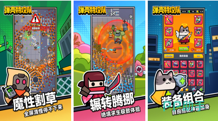 这是款内容塑造休闲魔性的高评分割草类游戏,弹壳特攻队自从问世开始就获得了众多割草爱好者的好评,游戏设定的装备众多也可随机解锁形形色色的技能,在技能和武器的组合下会让割草流程更为酣畅,不断辗转的移动机制会给人不俗的紧迫感,满屏怪物对你发动进攻的画面压迫感十足,每一局游戏都能让你消灭海量怪物获得解压感。