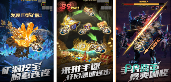 在矿洞当中挖宝,享受惊喜连连,有独特的手势点击快速攻击怪物,享受爽快的视觉效果,玩家将来到暗黑地牢,拿起武器,在非常黑暗的世界杀出一条血路,次世代坐骑自由切换,击杀怪物之后跨服组队,最终完成boss抢夺,获得个性化装备,超级丰富的特色副本以及boss享受别致的核心玩法。