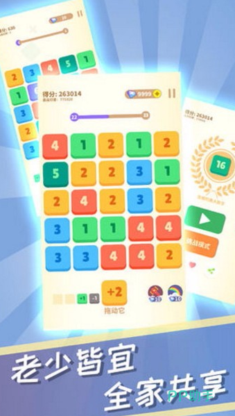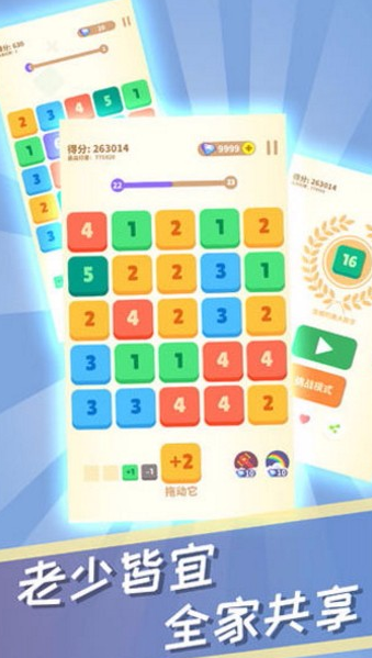 主打数字玩法的烧脑闯关游戏,核心就是靠方块的下落和平移等操作,把1024和2048这类基础数字不断合成叠加,朝着更大数值冲刺,刷新自己的分数上限。要是大家本身就喜欢数独这类数字谜题,那这款游戏的多样玩法和数字组合绝对能满足大家的需求。别看单局任务的表面规则很浅显,可千变万化的实操套路,特别考验玩家的灵活度。