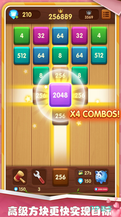 游戏主要的玩法就是数字合并,不过别出心裁的加入了泡泡射击的趣味设定,游戏中设计了很多有挑战性的关卡。每一个关卡都有着明确的分数目标,为了能帮玩家顺利通关。游戏还为我们贴心准备了刷新与提示,这种实用的辅助道具,全程只用手指就可以操作,把一样的数字方块对齐,就可以快速合成。