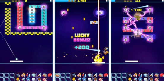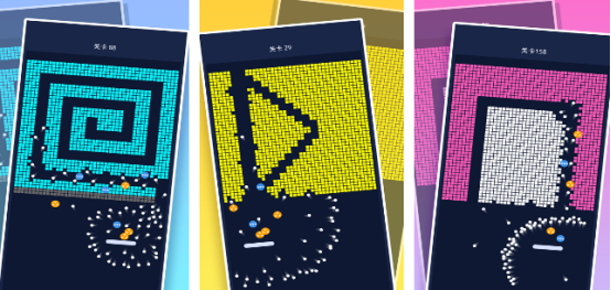 结合了射击与消除元素的休闲手游,围绕打砖块设计而成,有多种不同的特色模式,当完成打砖块之后,有机会触发连锁反应,炸弹砖块爆炸之后对周围半径1.2的所有砖块都会造成严重的伤害。其中加入了长方形,圆形等不同的特色形状,后续依旧会出现很多具有挑战性的关卡。