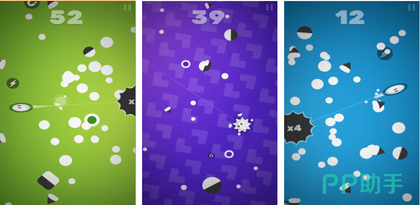 总的来说飞跃是款十分好玩又新奇有趣的消除类型游戏,特殊的旋转式消除得分概念是其他游戏不具备的,可以联机参与排行榜系统看看朋友们的排名,主要操作就是长按屏幕扯着小球在原地旋转,通过触碰并消除白色的小球就可以获得一些积分,但是一定要规避任何黑色的物体否则小球会被破坏。