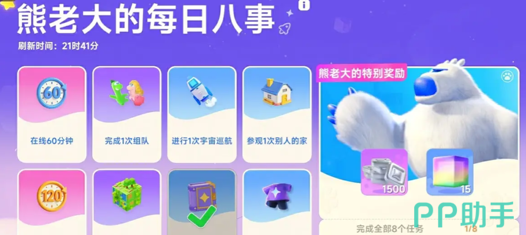 星绘友晴天完成每日心愿这个任务很简单,只需要记住每天进入心愿界面查看任务、按照晴天的喜好准备好必要的物品、完成之后及时领取奖励,就可以最大限度地发挥每日心愿带来的资源收益。不断完成心愿,养成进度会快速提升,玩家们解锁更多晴天专属互动,在游戏过程中感受到更加温暖治的力量。