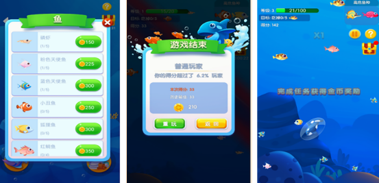 和我们玩的大鱼吃小鱼游戏特别相似,在特别清新又靓丽的海洋环境当中,起初只是一条小小的鱼儿通过。吞噬比自己小的鱼儿的方式让自己也逐渐变得越来越大,但是在游走的过程中也要及时躲避比自己大的鱼类,否则就会被其吃掉。吃掉的鱼儿越多,获得的分数也会越高,也可装饰自己的水族馆。