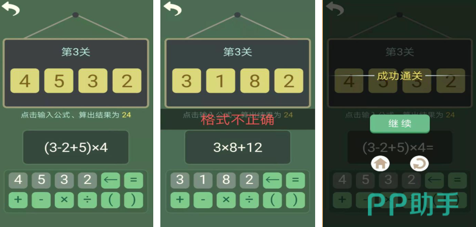 这一款游戏主要是以提高玩家们对于数学认知的游戏,它本身游戏玩法非常简单,其中所需要遇到的困难就是需要输入结果为24的公式,在每一个关卡中所遇到的数字都不同,虽然结果相同,但是其中的公式以及数字排列都拥有着很大的差异,能够很好的提高对于加减乘除这些基础认知,也可以极大的加大小朋友们对于数字运算的速度,总之,对于提高对数字的敏感度来说是一个非常不错的游戏。