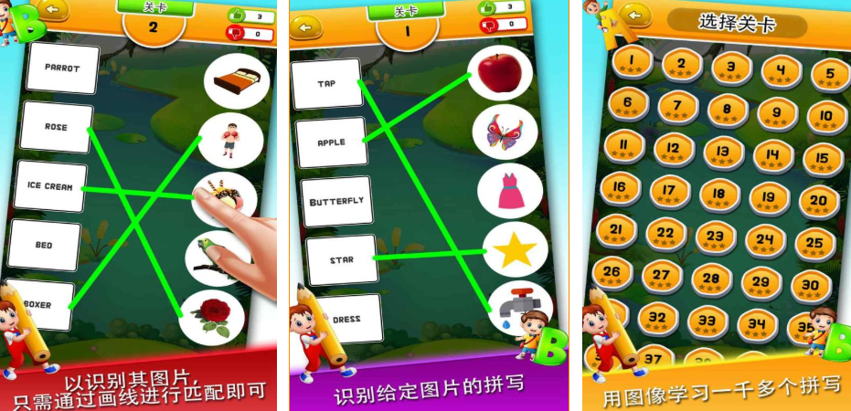 这一款游戏是以闯关的模式来让玩家们了解单词,记住单词,通过将对学习内容的安排,使它更加的游戏化以及情景化,让玩家们感受到知识与游戏相结合的乐趣,主要是影响玩家们从被动学习变成主动学习的心理改变,而对于游戏内容,也主要是针对玩家们对于非母语英语的学习以及认知,最终达到能够拼音会写,轻松突破学习英语的束缚限制。