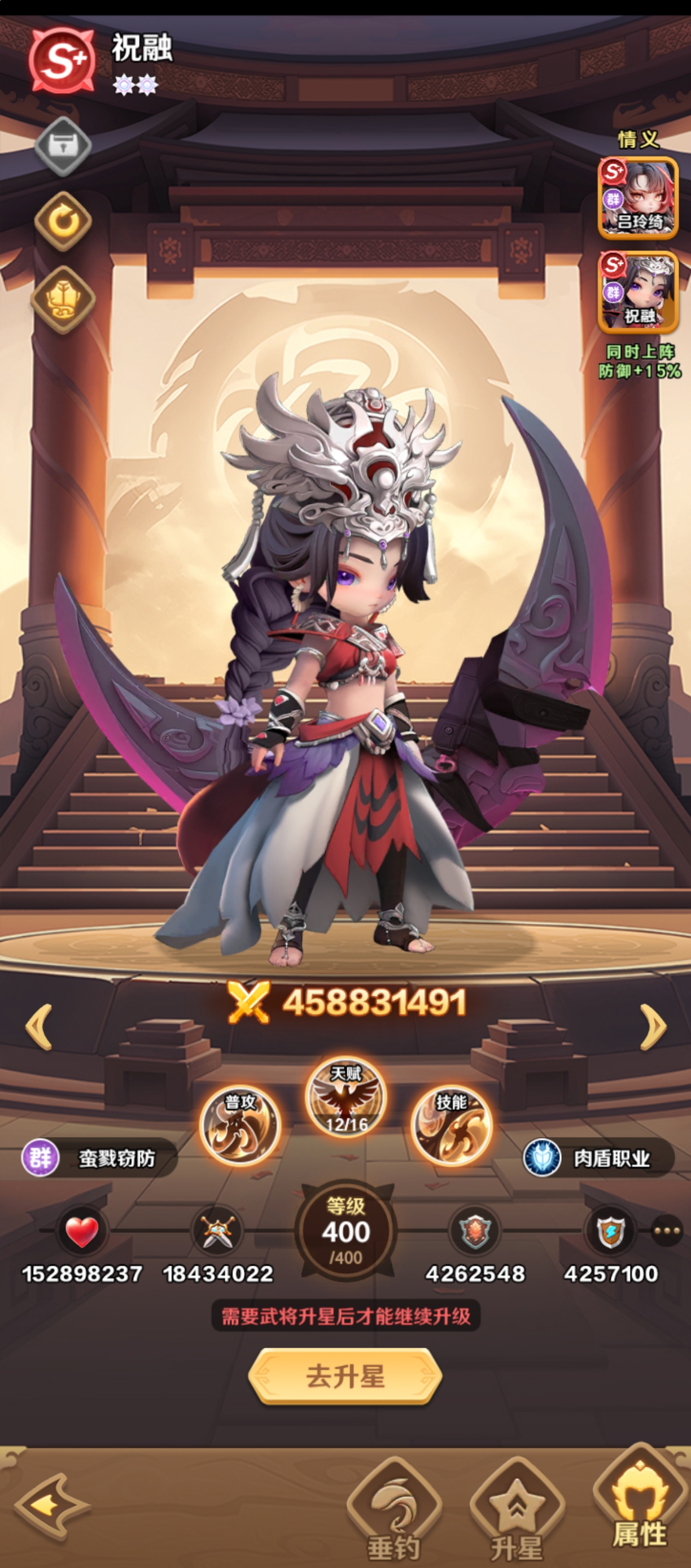 该阵容以吕布为核心输出单位,主打单体极限爆发;袁绍担任副输出角色,承担群体压血与收割职能;董卓为前排主坦,具备30%全队伤害分摊能力,并可对攻击者反弹15%伤害;貂蝉负责关键控制,其技能可有效打断敌方怒气技释放链,为吕布创造持续安全输出窗口;祝融与吕玲绮则共同构建减益体系,使目标每回合损失15%攻击力及等量生命值,显著强化袁绍的精准斩杀效率。