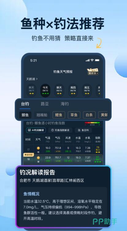 本产品深度聚焦垂钓场景,与其他通用软件不同,它专为钓鱼人设计,核心功能是提供结合了温度、气压、风力等关键数据的钓鱼指数分析,还能提供潮汐、月相等水域信息,并为用户智能推荐附近的钓点。