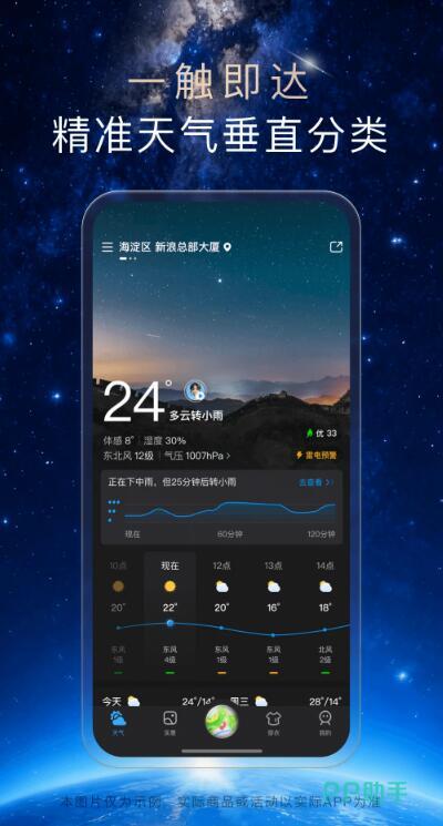 天气预报24小时详情软件之所以重要,是因为它能为你预报未来的天气情况,要是没有这些应用,你就有概率被突如其来的大雨困住,或是因为无法掌握最新的天气资讯,导致之前的计划不能正常实行。不过传统的天气软件不够精细,难以满足现在大家的需求,接下来,小编就为你推荐几个播报准确的产品。