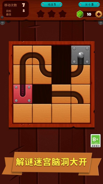 核心机制为模块化路径构建:场景由可移动的带轨道方块组成,中央置入一颗小球。玩家需调整方块朝向与位置,拼接出连续、无断点的通行路径,引导小球从起点抵达终点区域。关卡中设置障碍墙、陷阱格、转向限制等变量,要求玩家综合运用试错、回溯与空间推演策略。