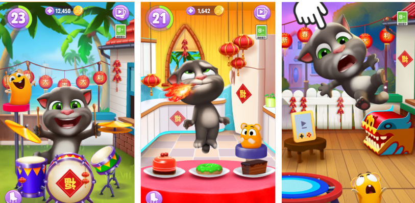 作为经典虚拟宠物IP的续作,本作延续了高度拟真的语音交互系统。玩家可通过说话、模仿语气或改变音调,触发汤姆猫的多样化反应,包括跳舞、打喷嚏、伸懒腰等行为。支持喂食、换装、清洁等日常养成模块,并内置任务系统,完成目标可获得金币用于解锁道具与装饰。UI界面延续系列一贯的萌系卡通风格,操作友好,适合全年龄段用户。