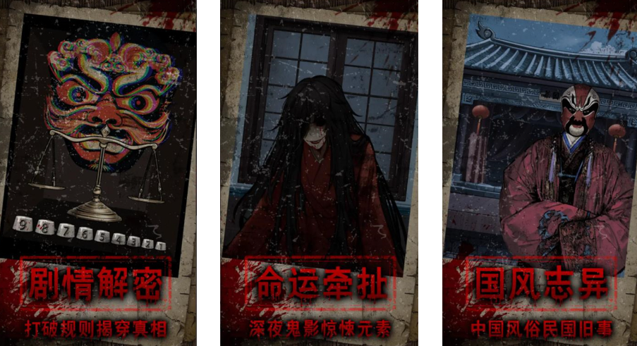 本作以民国时期民间灵异调查档案为蓝本,融合胶片质感画面与环境音效设计。场景采用低饱和度色调与动态光影,配合老式收音机杂音、纸张翻页声、远处断续铜铃等拟真音轨,构建高密度听觉压迫。叙事采用多视角轮替机制:玩家既可操控主角实地勘验,亦可切换至目击者、旧报纸编辑、甚至亡魂视角获取矛盾信息,推动真相从不同维度坍缩成型,考验逻辑整合能力。