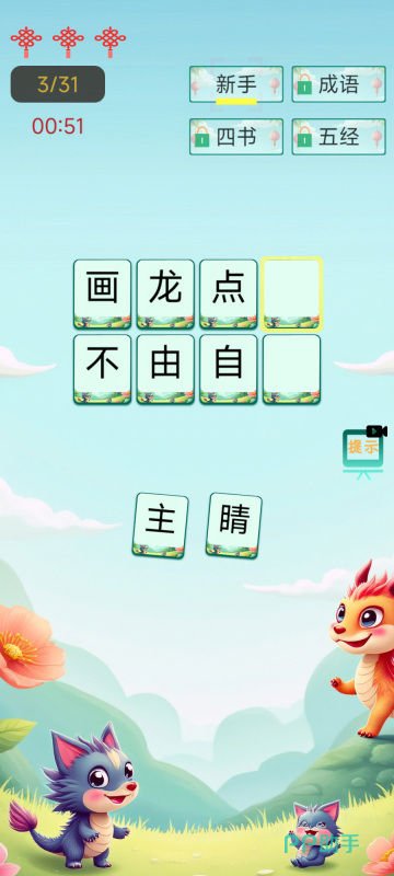 本作采用阶梯式关卡结构,每通过一关即解锁更具深度的成语谜题,难度随进度自然递进。游戏内置提示道具系统,在遭遇高难度题目时可合理调用,兼顾挑战性与可玩性。核心机制聚焦于成语典故理解、字义拆解及语境还原,全面检验玩家的语言感知力与文化积累。