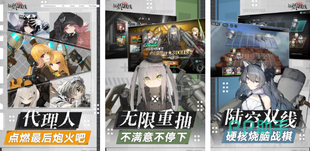 让身为代理人的你,点燃最后的炮火吧!无论是萝莉风还是御姐风,在这里通通被你收入麾下,不仅有热血枪战还有大型机甲,这些妹子绝对不是花瓶,战场上的战斗值绝对让你恐惧。对于新手玩家设置无限重抽模式,让你抽到满意角色为止,硬核陆空双双线对抗玩法,绝对烧脑又上头,君无拟人角色设计更加考究,海量的doll时装,任你发挥想象力。