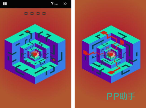 本作采用立体化迷宫结构,每个关卡均以中心节点向外延展多条路径,玩家需精准判断分支走向,将线路延伸至目标终点。关卡数量丰富,难度梯度平缓,新手可快速掌握规则,进阶阶段则需结合视觉预判与路径回溯能力。整体节奏舒缓,强调专注力与细节识别,适合日常轻度挑战。