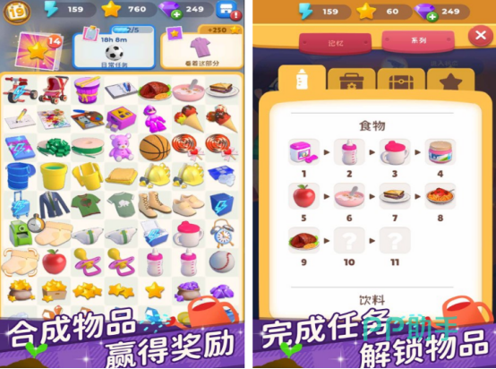 在传统连线玩法基础上融入物品合成系统:当两个相同图标成功连线后,将自动升阶为更高级别物品,并触发额外得分或特效奖励。题材围绕婴幼儿成长用品展开,如奶瓶、安抚奶嘴、积木、摇铃等,形象亲切,风格温馨。玩法融合消除、养成与收集要素,拓展了单一体验维度。