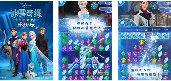 基于《冰雪奇缘》电影世界观开发的三消类手游,采用六边形网格布局与动态连锁消除机制。游戏内置艾莎、安娜、雪宝等角色专属技能,结合冰雪主题特效(如冰晶碎裂、霜冻蔓延)强化视觉反馈。关卡目标多样化,含限时挑战、步数限制、元素收集等模式,主线剧情全程配音演绎,任务系统覆盖成长、收集、社交三大维度。
