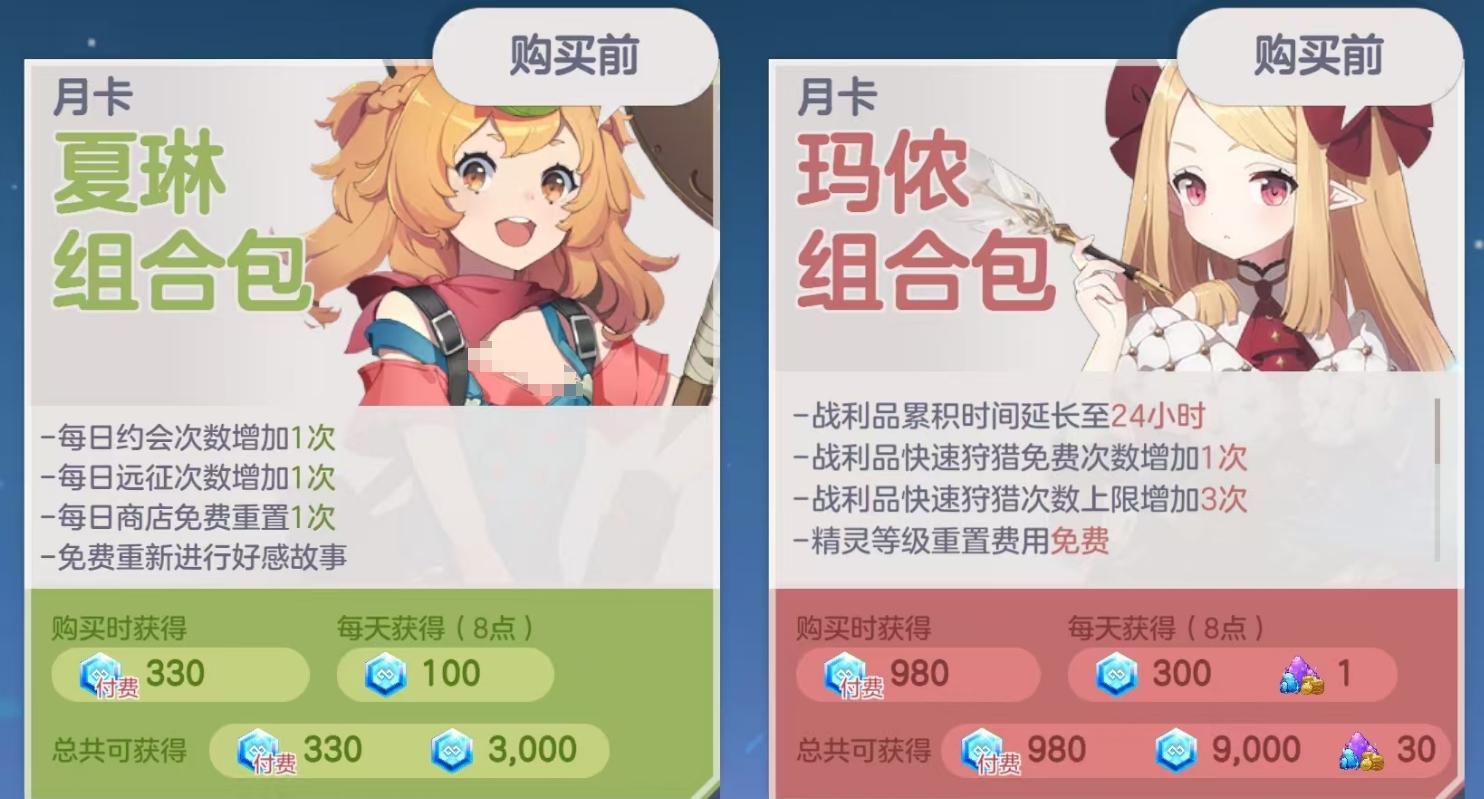 微氪向玩家建议优先配置首充礼包与月卡体系。首充即赠限定精灵克劳迪娅,次日发放五张遗物召唤券及十八朵幸运花束,第三日追加克劳迪娅进阶素材与传说级饰品自选箱。月卡分为夏琳月卡与玛侬月卡两类:购买后立即获得付费永恒石(夏琳330点、玛侬980点),并在整月有效期内每日领取固定额度——夏琳月卡每日100点、玛侬月卡每日300点永恒石;两档月卡特权互不冲突,支持叠加生效,且同步解锁专属加速与资源增益效果。