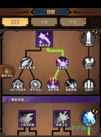 暗系流派强调持续压制与状态叠加,起手推荐【暗蚀】,该技能可造成持续真实伤害并削弱目标防御力;搭配【夜幕极影狂舞】进行范围暗属性输出,并刷新自身部分技能冷却,增强连招流畅度。若需进一步扰乱敌方行动逻辑,可升级【夜影梦】,使目标陷入【混乱】状态,攻击目标随机化;最后辅以【毒藤毒瘴】叠加【中毒】减益,实现伤害、减防、控场、干扰四重压制,玩家仅需保持安全距离持续施法即可掌控全场节奏。