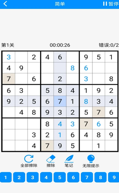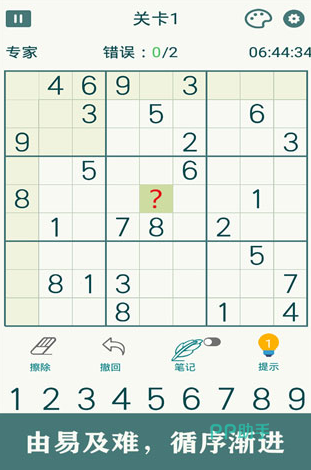 本作强调自主推演过程,每一步填数均需结合行列宫三重约束进行判断。游戏采用极简UI设计,无冗余装饰,数字输入响应灵敏,支持撤销与高亮候选数功能。关卡数量充足,难度梯度平滑,初学者可快速掌握基础技巧,进阶玩家则需综合运用隐性唯一、区块排除等策略方可通关。
